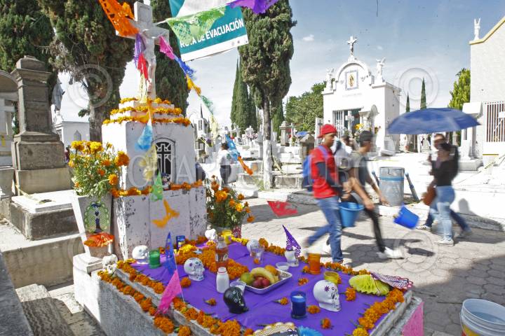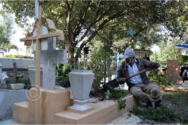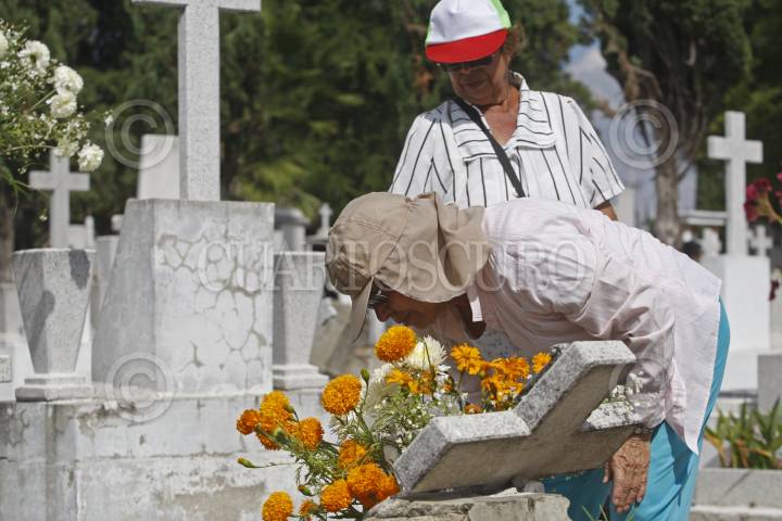 MÉXICO D.F. 01NOVIEMBRE2006.- Al celebrarse el día de muertos, la gente asiste a los panteones a limpiar y adornar las tumbas donde se encuentran los resto de sus familiares fallecidos. Esto en el Panteón Dolores de la ciudad. FOTO: GUILLERMO PEREA/CUARTOSCURO.COM