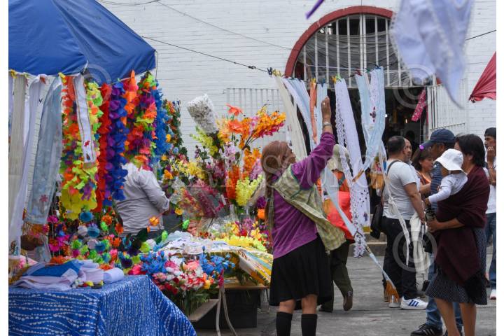 TOLUCA, ESTADO DE MÉXICO, 02MAYO2024.- Para la celebración de la Santa Cruz este 3 de mayo, comerciantes del Mercado 16 de Septiembre y comerciantes de temporada se encuentran ofreciendo cruces de madera, flores naturales, de plástico y papel, así como los mantos para poder adornar las cruces, y poderlas llevar a bendecir a las distintas iglesias de la capital mexiquense, como parte de las tradiciones católicas. FOTO: CRISANTA ESPINOSA AGUILAR /CUARTOSCURO.COM