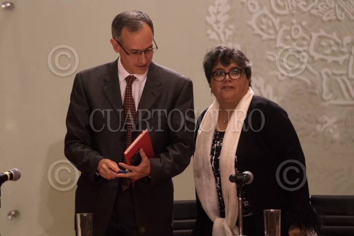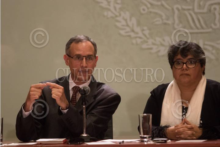 CIUDAD DE MÉXICO, 24JUNIO2019.- Hugo López Gatell, subsecretario de Prevención y Promoción de la Salud, y Raquel Buenrostros Sánchez, Oficial Mayor de la Secretaría de Hacienda, ofrecieron una conferencia de prensa en la cual hablaron sobre la compra de medicamentos para el sector salud y su distribución, negaron que se vaya presentar un problema de desabasto. FOTO: MOISÉS PABLO /CUARTOSCURO.COM