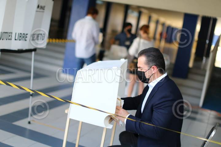 Adrián de la Garza, candidato a la gubernatura de Nuevo León por el PRI, emitió su voto en una casilla al poniente de la ciudad.
