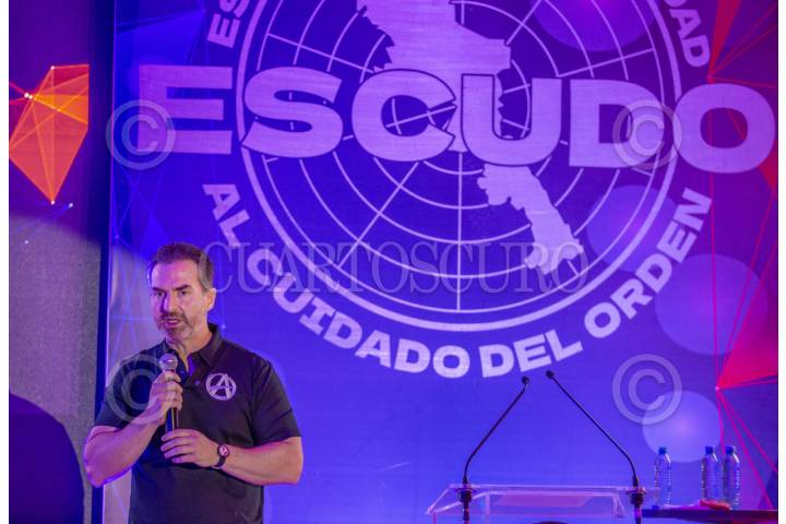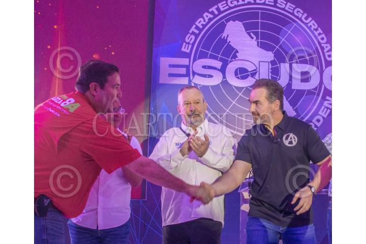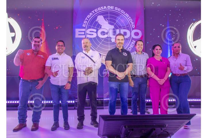 MONTERREY, NUEVO LEÓN, 15ABRIL2024.- El candidato a la Alcaldía de Monterrey por la coalición PRI, PAN, PRD; Adrián de la Garza Santos, presentó su estrategia de seguridad "Escudo", acompañado de Mauricio Fernández, candidato a la alcaldía de San Pedro, José Luis Garza Ochoa, candidato a la alcaldía de Guadalupe, entre otros. FOTO: GABRIELA PÉREZ MONTIEL / CUARTOSCURO.COM