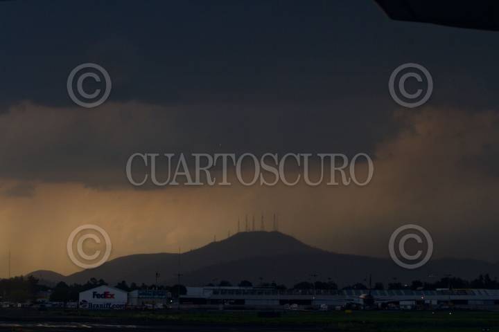 MÉXICO D.F. 11JULIO2013.- Vista panorámica del Valle de México, enmedio de una lluvia prevista por el Sistema Metereológico como constante en diversas Delegaciones. Incluyendo Venustiano Carranza, donde se encuentra el Aereopuerto Benito Juárez, el cual continua con sus actividades normales a pesar de la lluvia. FOTO: JUAN PABLO ZAMORA/CUARTOSCURO.COM