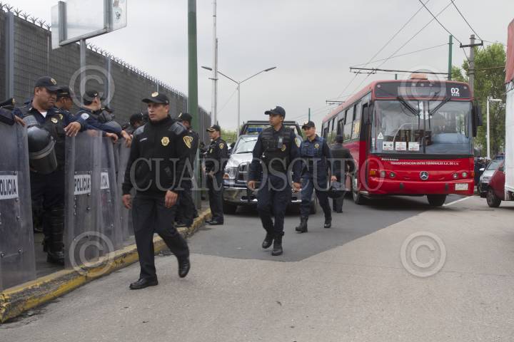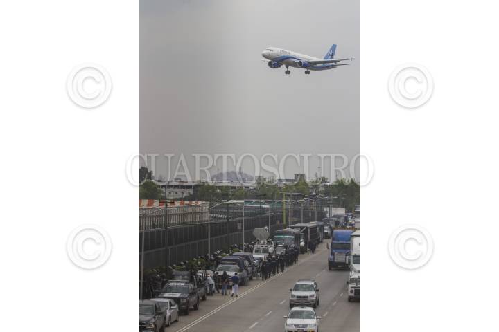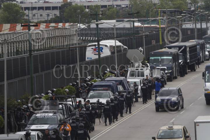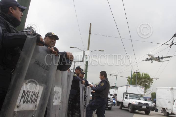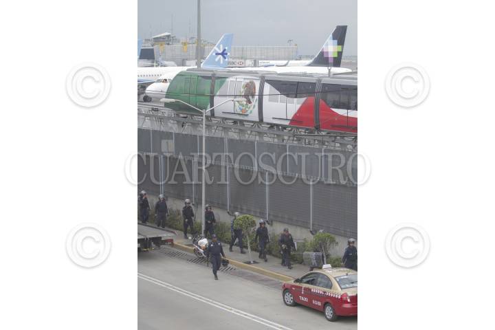 MÉXICO, D.F., 03SEPTIEMBRE2013.- Ante algunos rumores de que Maestros de la Coordinadora Nacional de Trabajadores de la Educación (CNTE) se dirigieran al Aereopuerto Internacional de la Ciudad de México, policias del Agrupamiento de Granaderos y de la Policia Federal resguardaron las inmediaciones del Aereopuerto. FOTO: JUAN PABLO ZAMORA /CUARTOSCURO.COM