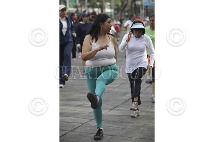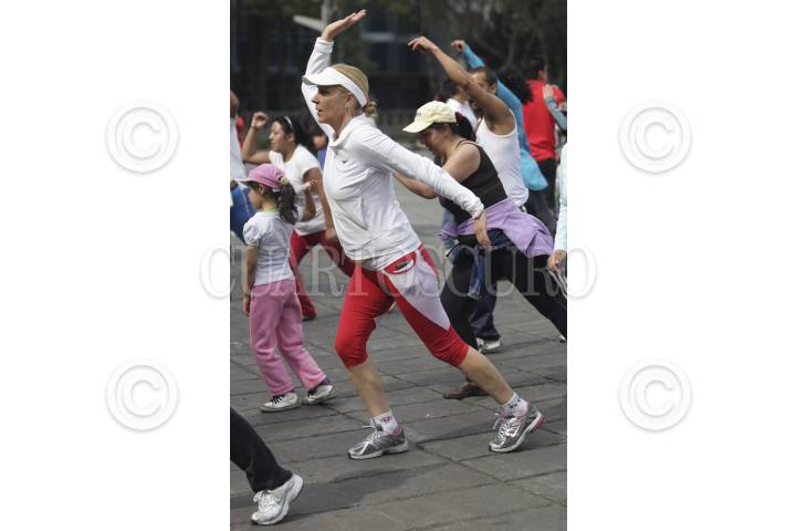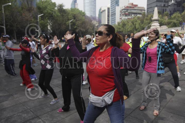 MÉXICO, DF 18MARZO2012.- Personas hacen aeróbics y rutinas con música al pié del Monumento a la Independecia, dentro del programa Metete en Cintura, organizado por la Secretaría de Salud del D.F. FOTO: JUAN PABLO ZAMORA /CUARTOSCURO.COM
