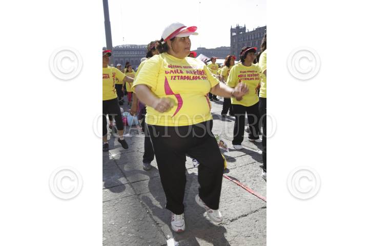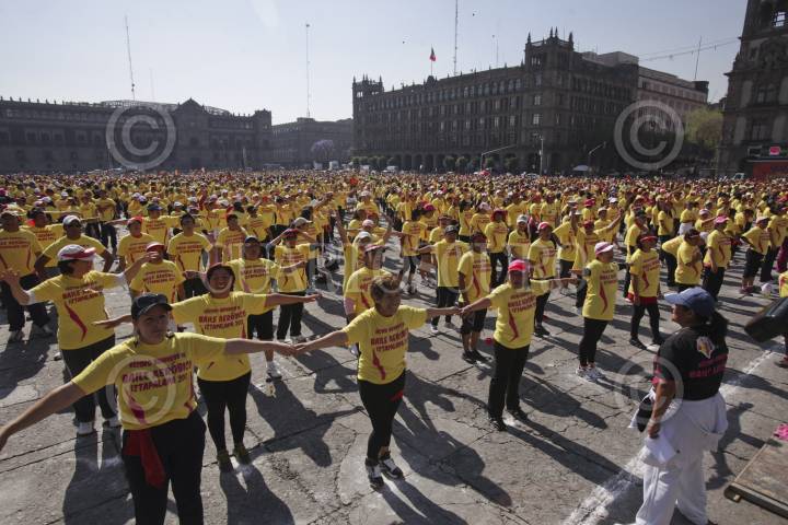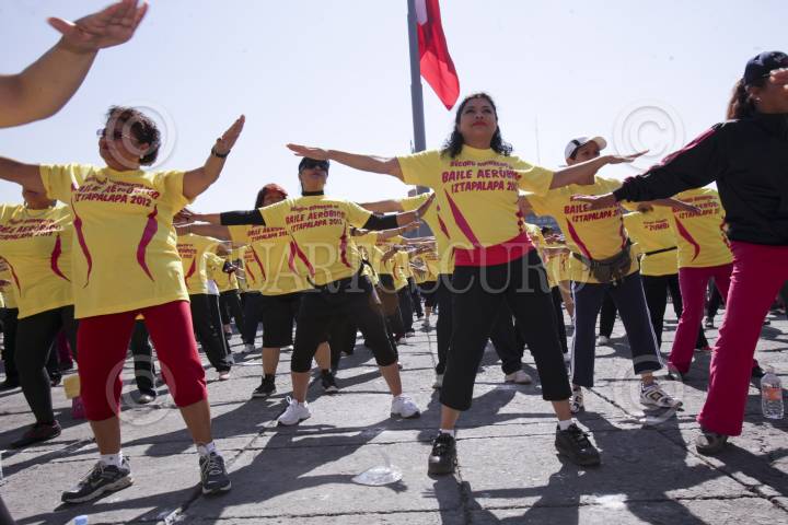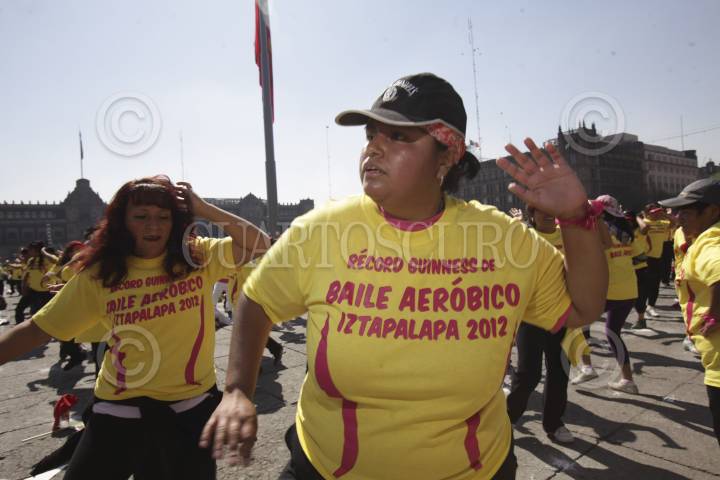 MÉXICO, DF 25 MARZO 2012.- La Delegación Iztapalapa obtuvo el Récord Guinness por la clase más grande de zumba, en el Zócalo, donde asistieron 6 mil 630 personas en el Zócalo. Aunque la cifra fue menor a la que proyectó la Delegada Clara Brugada, quien anticipó que 10 mil personas participarían. FOTO: JUAN PABLO ZAMORA /CUARTOSCURO.COM