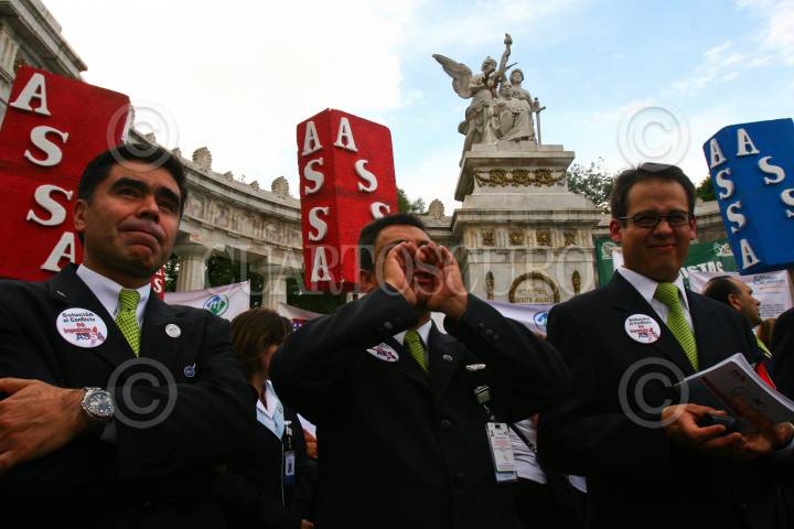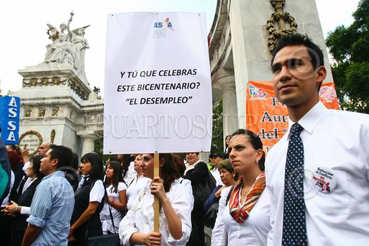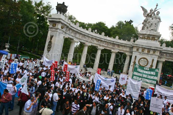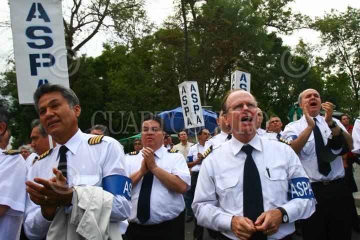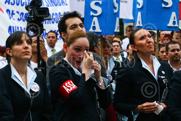 MÉXICO, D.F., 06AGOSTO2010.- Pilotos y sobrecargos de Mexicana de Aviación protestaron en el Hemiciclo a Juárez contra la desaparición de la empresa aeronáutica, lo que provocaría el despido de cientos de trabajadores. FOTO: ISAAC ESQUIVEL/CUARTOSCURO.COM