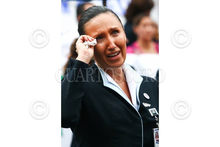 MÉXICO, D.F., 06AGOSTO2010.- Lizette Clavel, secretaria general de la Asociación Sindical de Sobrecargos de Aviación, durante la protesta que pilotos y sobrecargos de Mexicana de Aviación realizaron en el Hemiciclo a Juárez contra la desaparición de la empresa aeronáutica, lo que provocaría el despido de cientos de trabajadores. FOTO: ISAAC ESQUIVEL/CUARTOSCURO.COM