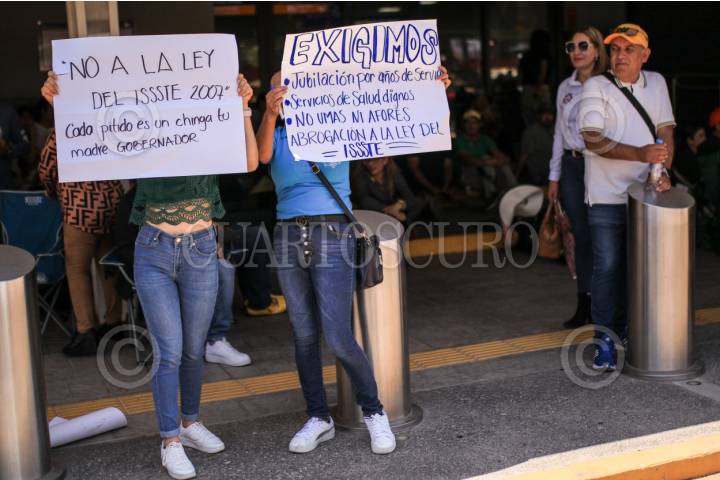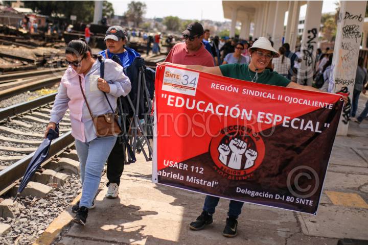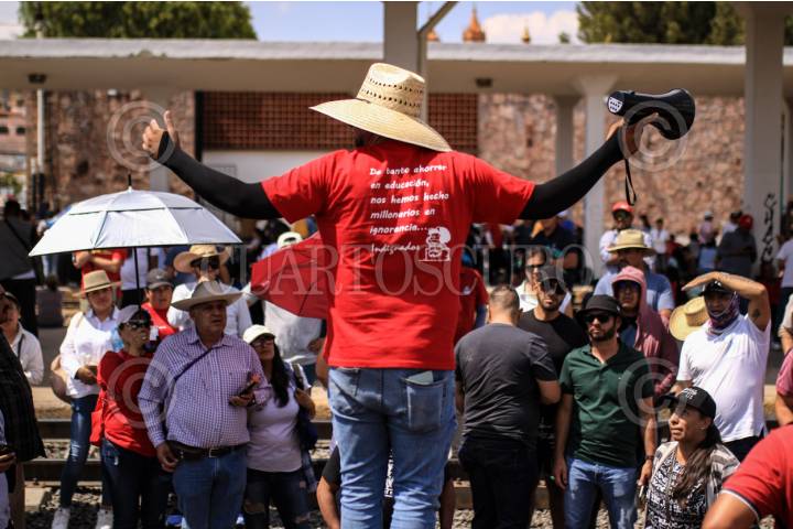 ZACATECAS, ZACATECAS, 28MAYO2025.- Maestros del Sindicato Nacional de Trabajadores de la Educación sección 34 y de la Coordinadora Nacional de Trabajadores de la Educación sección 58; realizaron acciones de protesta como parte de la lucha a nivel nacional por la abrogación de la Ley del Issste de 2007. Al rededor de las 12:00 hrs fueron convocados en la Plaza de Armas en donde mantienen un plantón permanente, para después definir los lugares para bloqueos intermitentes. Divididos por regiones, grupos de maestros mantuvieron por momentos bloqueado la entrada al Aeropuerto Internacional de Zacatecas, otros grupos también hicieron lo mismo en la estación del ferrocarril "Maquina 30-30", en el centro de la ciudad; y un grupo más mantuvo la toma del edificio de Secretaria de Finanzas en Ciudad Administrativa. FOTO: ADOLFO VLADIMIR /CUARTOSCURO.COM