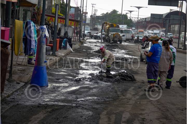 CIUDAD DE MÉXICO 03JUNIO2025.- La calzada Zaragoza fue una de las vialidades más afectadas luego de las intensas lluvias de la capital, en este sentido después de un bloqueo por parte de comerciantes afectados se realizó la limpieza de la vialidad. FOTO:ROGELIO MORALES /CUARTOSCURO.COM