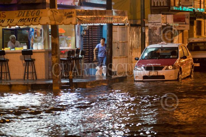 VERACRUZ, VERACRUZ, 04SEPTIEMBRE2010.- Las fuertes lluvias comenzaron afectar las calles del puerto con inundaciones en las avenidas principales de esta ciudad. FOTO: GUILLERMO PEREA/CUARTOSCURO.COM