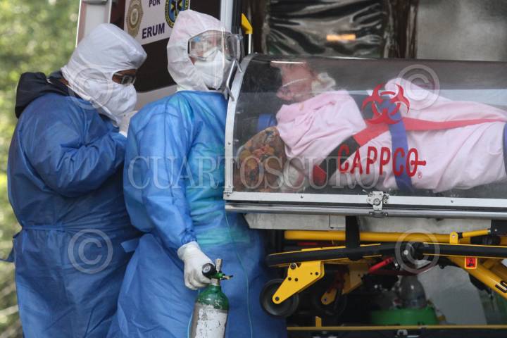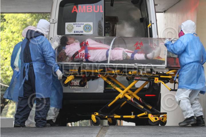 Ingreso de una mujer encapsulada al área de urgencias por COVID-19 en el Hospital de los Venados.