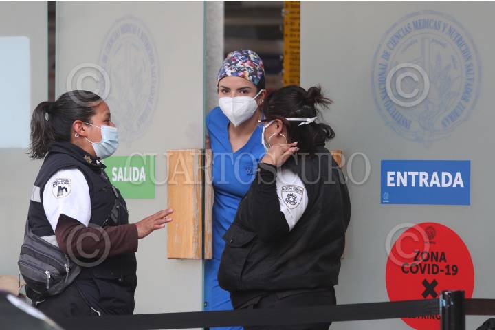 Ingreso de un hombre al área de atención a pacientes confirmados con COVID-19 en el Hospital de Nutrición.