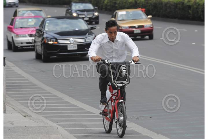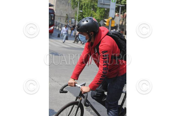 CIUDAD DE MÉXICO, 05MAYO2016.- Luego de tres días, la Comisión Ambiental de la Megalópolis (CAMe) suspendió la fase I de Contingencia Ambiental para 16 delegaciones de la CDMX y 18 municipios del Estado de México. En algunas avenidas de la ciudad, se observa poca afluencia vehicular debido a la aplicación del doble Hoy No Circula, algunos ciclistas circulan con tapabocas para protegerse de los gases contaminantes. FOTO: ARMANDO MONROY /CUARTOSCURO.COM