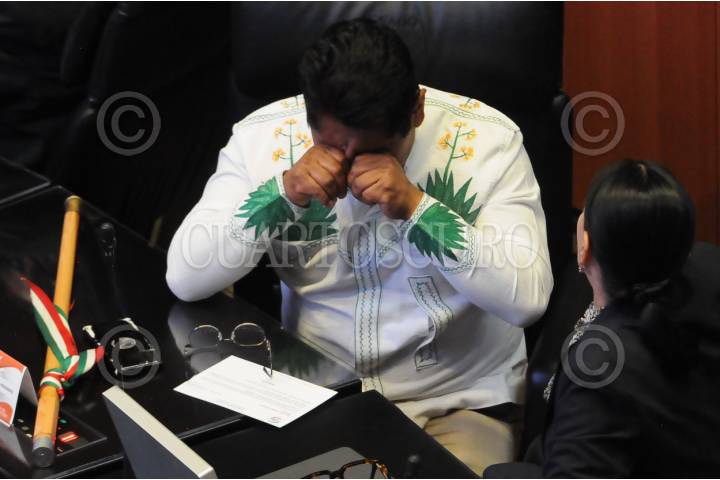 CIUDAD DE MÉXICO, 25ABRIL2024. - El senador de Morena, Adolfo González, quien organizó una ceremonia para pedir lluvia y donde fue sacrificada una gallina, se encuentra presente en la sesión de este jueves. FOTO: DANIEL AUGUSTO /CUARTOSCURO.COM