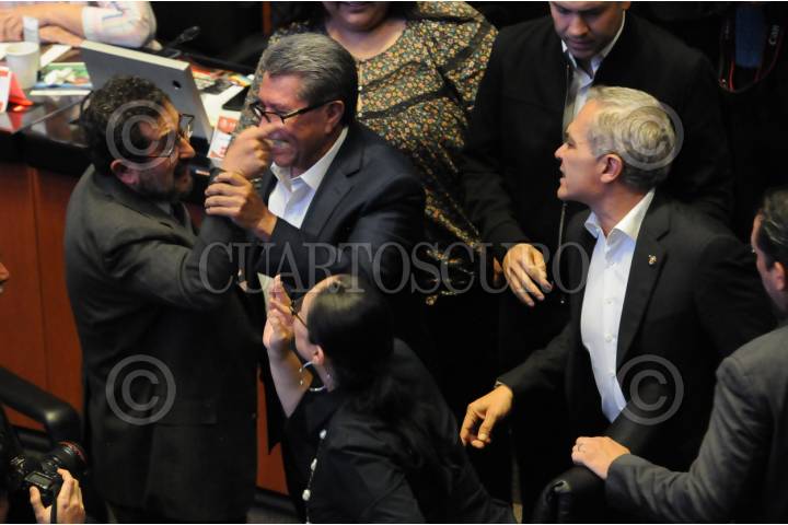 CIUDAD DE MÉXICO, 25ABRIL2024. - Ricardo Monreal, senador de Morena, detuvo a los senadores César Craviotto y Miguel Ángel Mancera, luego de que comenzaran a discutir. FOTO: DANIEL AUGUSTO /CUARTOSCURO.COM