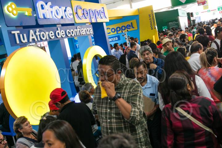 CIUDAD DE MÉXICO, 21JULIO2024.- Con gran afluencia de personas concluyo el último día de actividades de la Feria de Afores 2024 en el Zócalo. Personas abarrotaron los diversos módulos para poner en orden el cobro de sus Afores o para cambiarse a otra que les ofrezca mejores rendimientos. FOTO: MOISÉS PABLO/CUARTOSCURO.COM