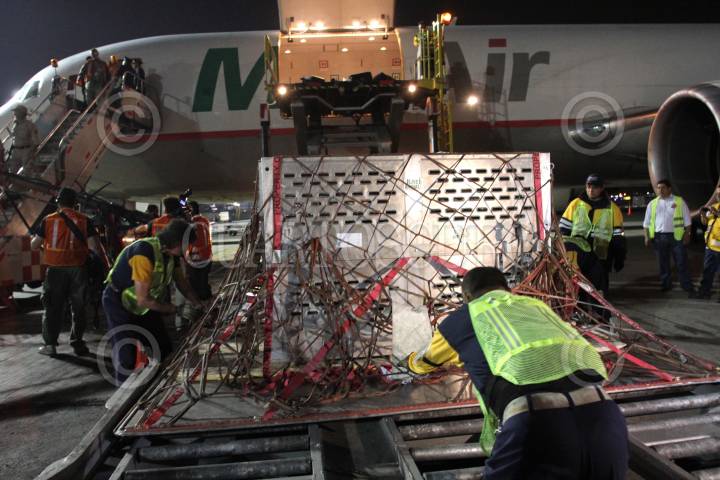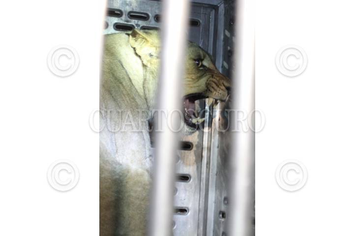 MÉXICO, D.F.09MAYO2013.- Tres leonas, procedente de Alabama, arribaron al aeropuerto de la Ciudad de México en un avion de carga para ser trasladadas al zoologico African Safari en el estado de Puebla. SAÚL LÓPEZ /CUARTOSCURO.COM