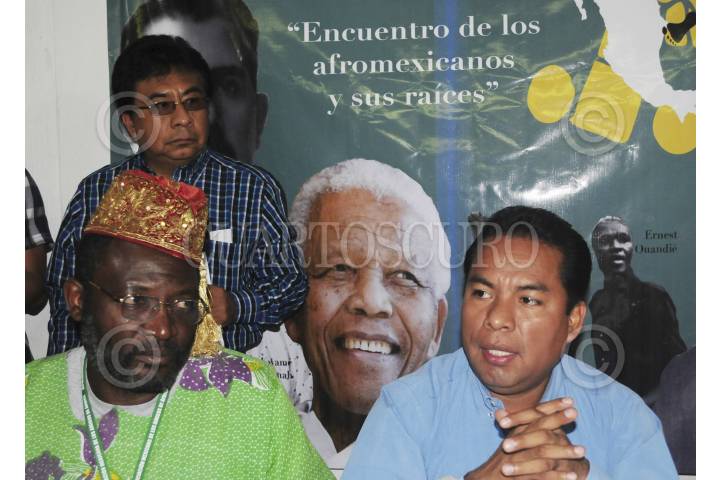 CHILPANCINGO, GUERRERO, 10MARZO2014.- La Secretaría de Asunto Indígenas Filemón Navarro Aguilar titular del SAI y el presidente de la Asociación Mexicana de los Amigos de África “ARICAMEX” el sacerdote Janvier Sidjeu firmaron un convenio de intercambio cultural, y un llevaran a cabo el primer encuentro de afromexicanos y sus raíces del 12 al 29 Marzo en Cuajinicuilapa, con la participación Marque y Azoyu de la región de la Costa Chica, informaron en conferencia de prensa. FOTO: JOSÉ I. HERNÁNDEZ /CUARTOSCURO.COM