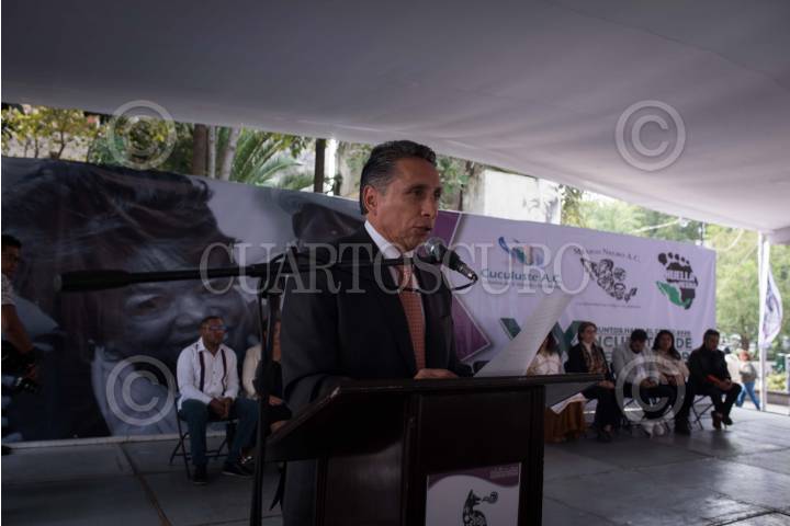 CIUDAD DE MÉXICO, 15NOVIEMBRE2019.- En el contexto del "XX Encuentro de Pueblos Negros", diversas organizaciones, entre las que figuran: "Cuculuste ", "México Negro y otras mas, realizaron una caminata desde el Centro Cultural Reyes Heroles hasta la explanada del Parque Hidalgo, en donde los esperaba el alcalde de Coyoacán, Manuel Negrete, quien dió la bienvenida a los representantes de las distintas organizaciones. FOTO: PEDRO ANZA /CUARTOSCURO.COM