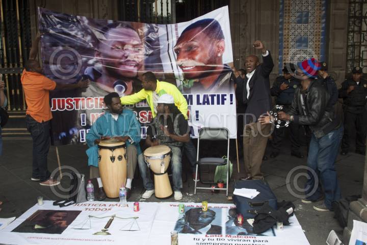 MÉXICO, D.F., 05JULIO2012.- Integrantes de la comunidad afromexicana se manifestaron afuera del Antiguo Palacio del Ayuntamiento para pedir justicia en el caso del asesinato del ciudadano estadounidense Malcom Latif, quien murió por los golpes que le propinaron unos meseros de un bar en Garibaldi, esta joven era nieto del activista Malcom X. FOTO: MOISÉS PABLO /CUARTOSCURO.COM