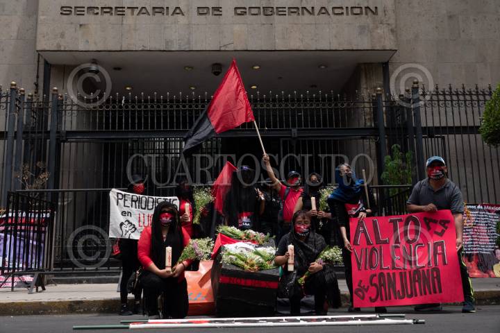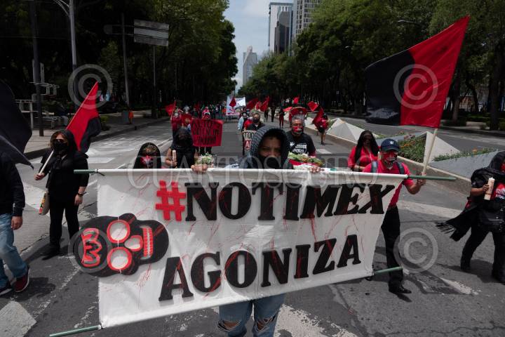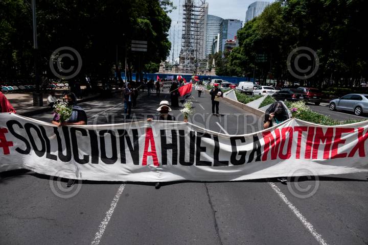 Integrantes del SutNotimex que a más de un año continúan en huelga por las acciones de Sanjuana Martínez marcharon a la Secretaría de Gobernación para exigir solución a sus demandas.