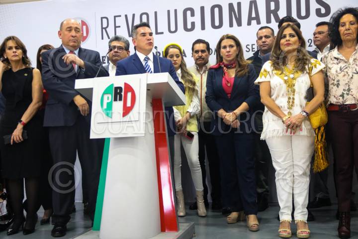 Conferencia del dirigente Alejandro Moreno Cárdenas y Rubén Moreira en la sede del PRI.