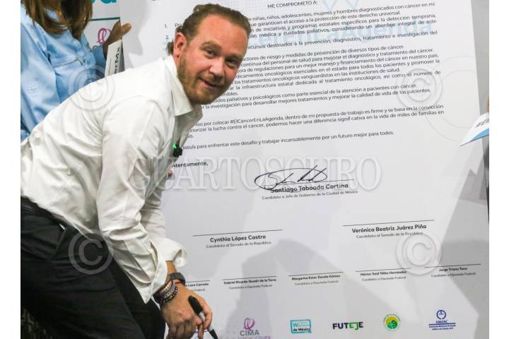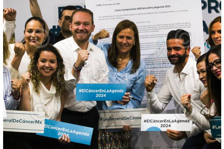 CIUDAD DE MÉXICO. 16MAYO2024.- Un grupo de candidatos de la Alianza Va Por la CDMX encabezados por Santiago Taboada Cortina, el aspirante a la jefatura de Gobierno, en la firma del “El Cáncer en la agenda”. Centro Oncológico Internacional; en el sur de la Ciudad de México. FOTO: VICTORIA VALTIERRA/CUARTOSCURO.COM