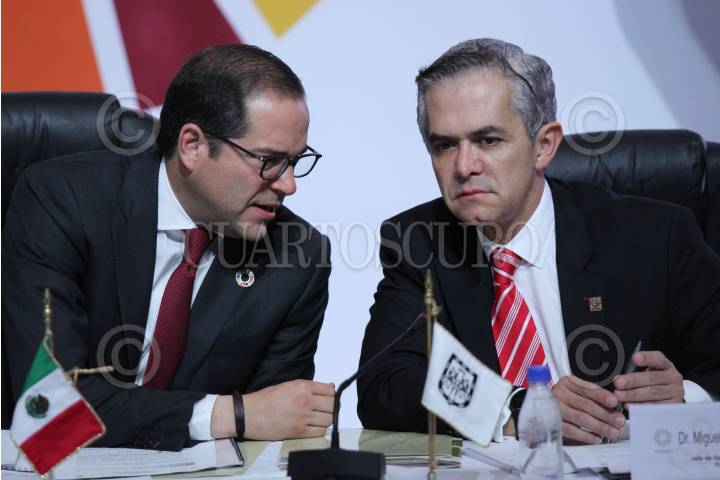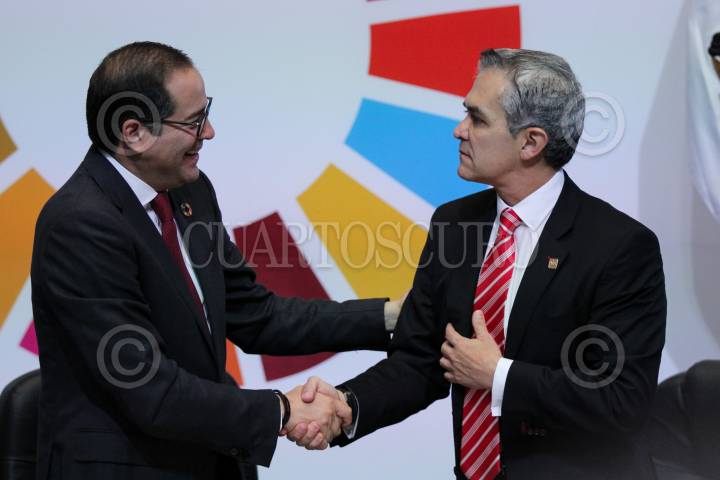 CIUDAD DE MÉXICO, 15JUNIO2017.- José Ignacio Peralta, gobernador de Colima, y Miguel Ángel Mancera, jefe de gobierno y presidente de la Conferencia Nacional de Gobernadores (CONAGO), durante la instalación de la agenda 2030 en la CONAGO en el antiguo Palacio del Ayuntamiento. FOTO: GALO CAÑAS /CUARTOSCURO.COM