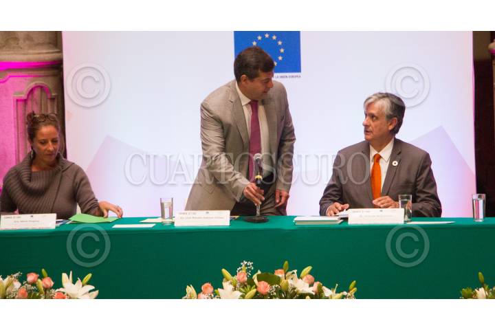 CIUDAD DE MÉXICO, 20NOVIEMBRE2018.- Cuauhtémoc Cárdenas, Marie Augouy, José Ramón Amieva y Antonio Molpeceres, durante la presentación de la Agenda 2030, que se llevo acabo en el patio central del H. Palacio del Ayuntamiento. FOTO: VICTORIA VALTIERRA /CUARTOSCURO.COM