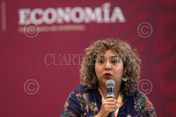 Irais Barreto Canales, titular de la Unidad de Inteligencia Económica Global y Secretaria Ejecutiva del Consejo Nacional de la Agenda 2030, durante del lanzamiento de la convocatoria para la "Red Juvenil por la Agenda 2030", en la Secretaría de Economía.