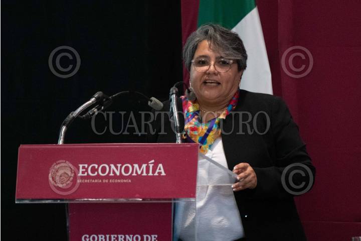 CIUDAD DE MÉXICO, 06OCTUBRE2023.- Raquel Buenrostro Sánchez, secretaria de Economía, durante el evento protocolario por la clausura de la Primera Convención Nacional por la Agenda 2030, realizado en la Torre Ejecutiva de la Secretaría de Economía. FOTO: MARIO JASSO/CUARTOSCURO.COM