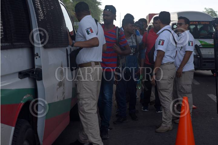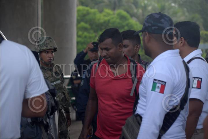 TAPACHULA, CHIAPAS, 10JUNIO2019.- Agentes migratorios, policías federales, policías militares y marinos, realizan un operativo en conjunto en busca de personas cruzando de manera irregular la frontera sur del país. Durante el operativo los agentes migratorios detuvieron a ocho hombres provenientes de la India y a un hombre guatemalteco, quienes serán llevados a la Estación Migratoria Siglo XXI, para registrarse como lo anunció el secretario de Relaciones Exteriores Marcelo Ebrard, después del registro podrían iniciar trámites para regularizar su situación migratoria o ser deportados. FOTO: ISABEL MATEOS /CUARTOSCURO.COM