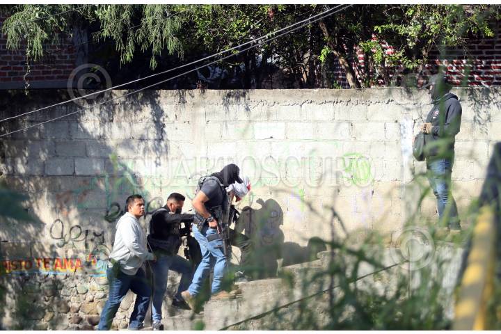 Investigadores de la Fiscalía de Morelos detienen a un joven en un cateo realizado en el municipio de Temixco.