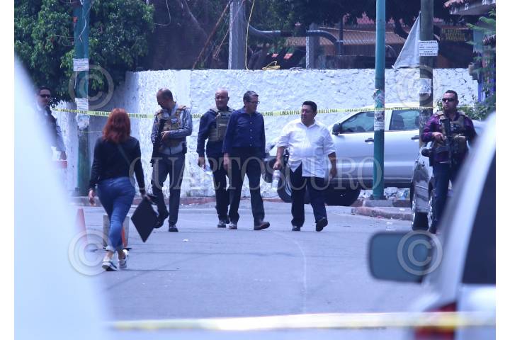 El fiscal de Justicia de Morelos, Uriel Carmona Gándara, en el sitio donde se suscitó un enfrentamiento entre agentes y personas armadas, con el saldo de dos hombres fallecidos.