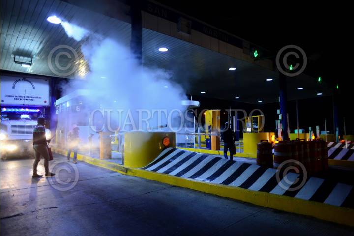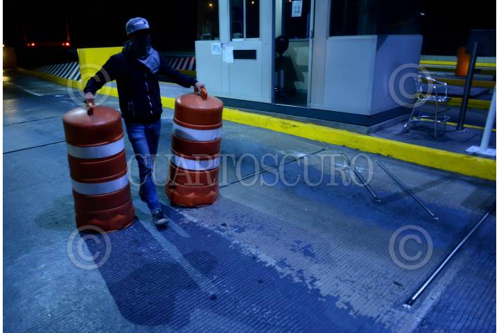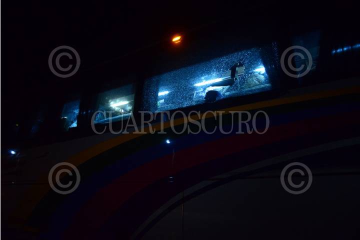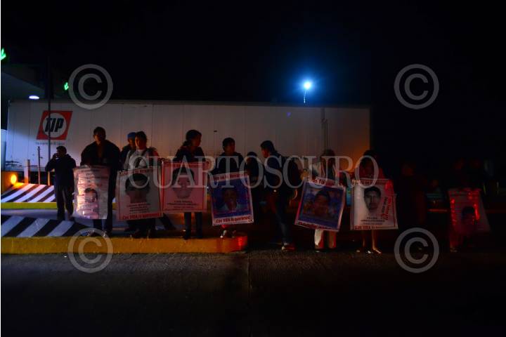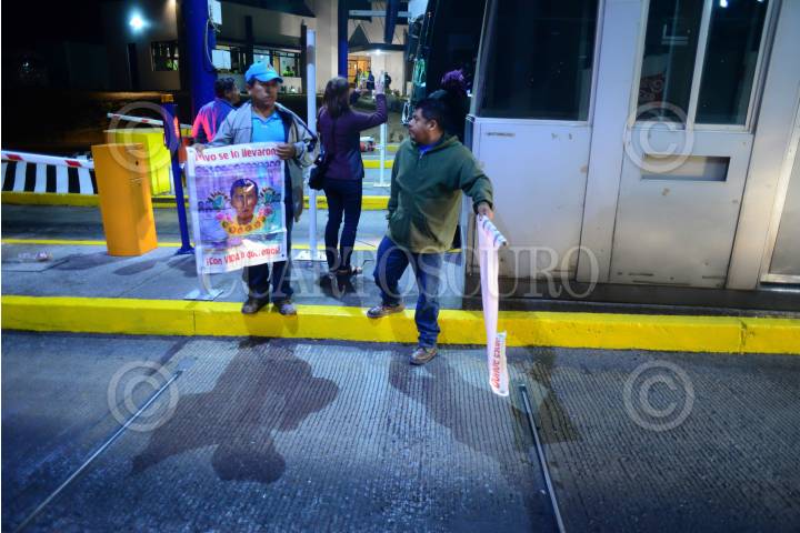 SAN MARTÍN TEXMELUCAN, PUEBLA, 28FEBRERO2016.- El autobús en el viajaban las madres y padres de los 43 normalistas desaparecidos fue agredido por personal de seguridad de la caseta San Martín, cuando los estudiantes que acompañaban a los padres bajaron del autobús para ver lo ocurrido, militares apuntaron con armas a estos, en forma de protesta los padres tomaron la caseta y recolectaron dinero para continuar con su Caravana por la Verdad y la Justicia. FOTO: ISABEL MATEOS /CUARTOSCURO.COM