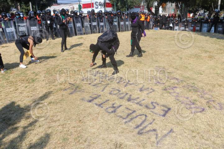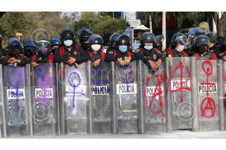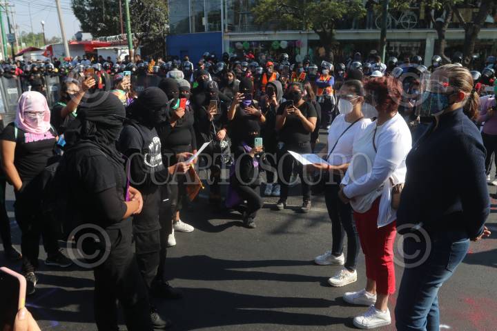 Mujeres policías de la SSC encapsularon a la marcha de feministas que pretendían llegar a la dirección general del IPN.