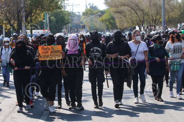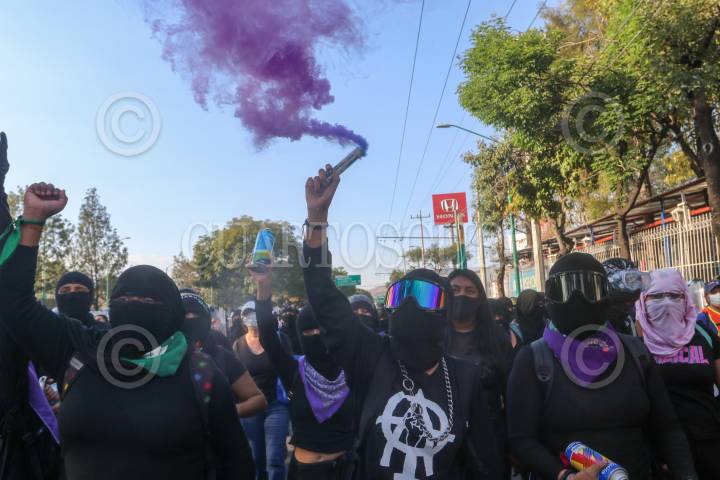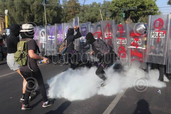 Mujeres del Bloque Negro fueron encapsuladas por la policía durante la marcha que realizaron esta tarde en las inmediaciones del IPN.