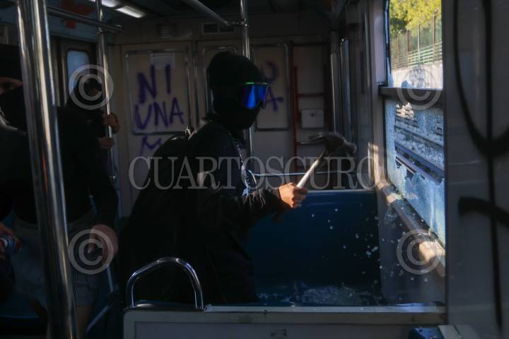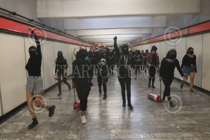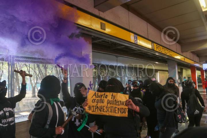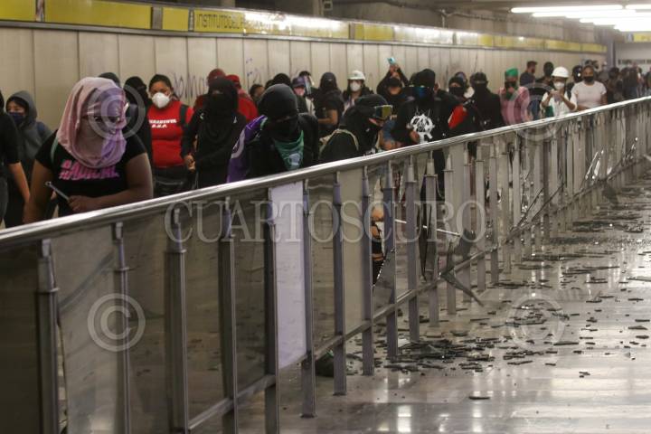 Integrantes del Bloque Negro rompieron vidrios en el metro Lindavista, en el marco de una protesta que realizaron en la inmediaciones del IPN, por diversos de acoso sexual que han quedado impunes.