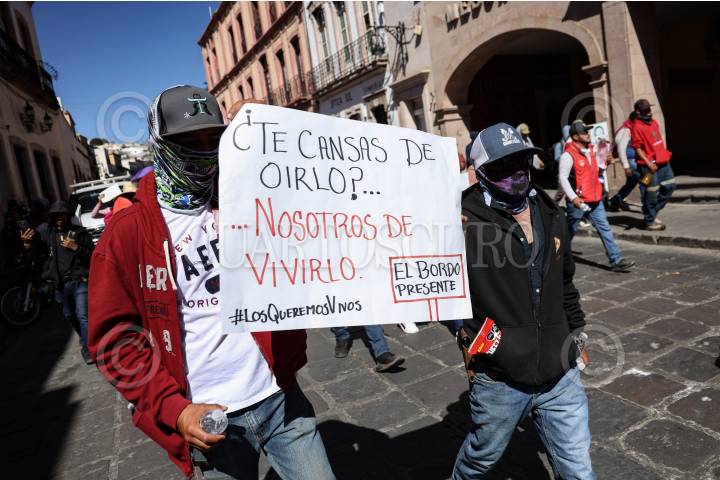 ZACATECAS, ZACATECAS, 25FEBRERO2025.- Cientos de personas de diferentes comunidades agrarias del municipio de Morelos y organizaciones campesinas marcharon sobre el bulevar metropolitano para después entrar al centro de la ciudad y llegar a Plaza de Armas para demandar la aparición con vida de Noe Alonso Martínez Cervantes y José Porfirio Uriel Trejo Acosta, productores de frijol, desaparecidos el pasado 20 de febrero en el municipio de Guadalupe. Previo al inicio de la marcha se tuvo conocimiento de su aparición con vida, pero familiares y organizadores decidieron continuar con la marcha ya que se encontraban otros familiares de personas desaparecidas. FOTO: ADOLFO VLADIMIR /CUARTOSCURO.COM