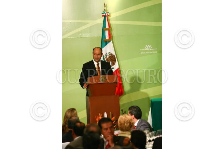 MÉXICO, D.F., 29JULIO2008.- Juan Carlos Cortes García, presidente entrante del Consejo Nacional Agropecuario, durante la comida de clausura de la Vigésima Quinta Asamblea General Ordinaria de dicho organismo. FOTO: ISAAC ESQUIVEL/CUARTOSCURO.COM