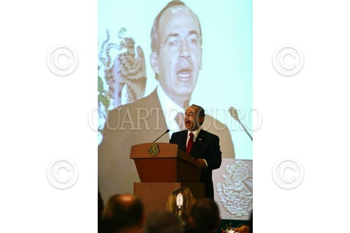 MÉXICO, D.F., 29JULIO2008.- El presidente Felipe Calderon, durante la comida de clausura de la Vigésima Quinta Asamblea General Ordinaria de dicho organismo. FOTO: ISAAC ESQUIVEL/CUARTOSCURO.COM