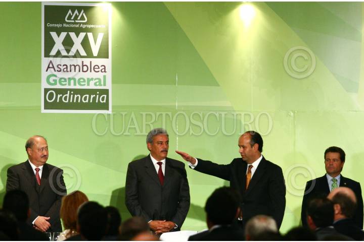MÉXICO, D.F., 29JULIO2008.- Juan Carlos Cortes García, presidente entrante del Consejo Nacional Agropecuario, durante su toma de protesta en la Vigésima Quinta Asamblea General Ordinaria de dicho organismo. FOTO: ISAAC ESQUIVEL/CUARTOSCURO.COM