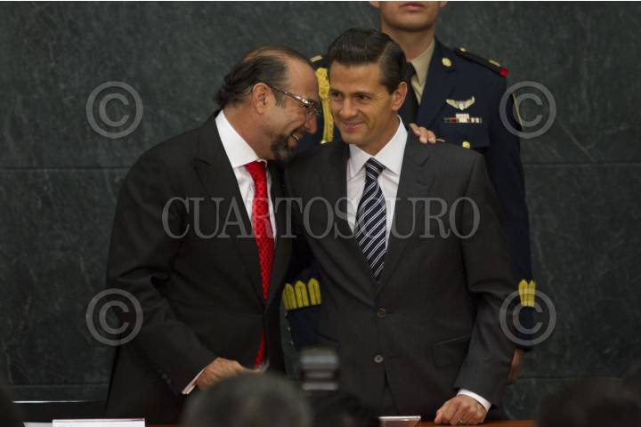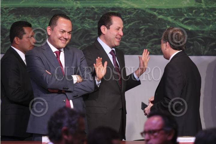 MÉXICO, D.F., 17DICIEMBRE2015.- Eruviel Ávila Villegas, Gobernador del Estado de México y Presidente de la Conago y José Antonio Meade Kuribreña, Secretario de Desarrollo Social, durante la XXXII Asamblea General Ordinaria del Consejo Nacional Agropecuario, presidida por Enrique Peña Nieto, presidente de México, Benjamín Grayeb Ruiz, Presidente del Consejo Nacional Agropecuario y José Eduardo Calzada Rovirosa, Secretario de Agricultura, Ganadería, Desarrollo Rural, Pesca y Alimentación. FOTO: ADOLFO VLADIMIR /CUARTOSCURO.COM