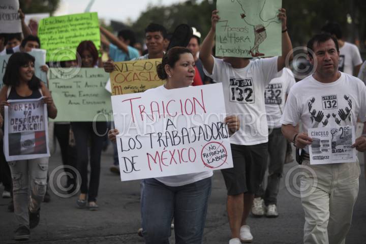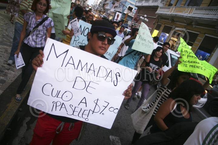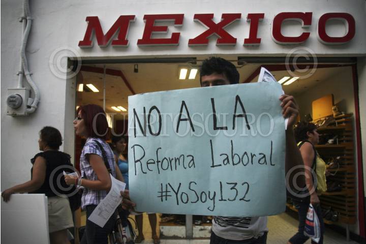 VERACRUZ, VERACRUZ 29SEPTIEMBRE2012.- Decenas de estudiantes, empleados, obreros y miembros de sindicatos veracruzanos, recorrieron las principales calles del puerto, así como la zona comercial de esta ciudad, para protestar por la aprobación de la reforma laboral implementada por el presidente Felipe Calderón Hinojosa. FOTO: FÉLIX MÁRQUEZ /CUARTOSCURO.COM