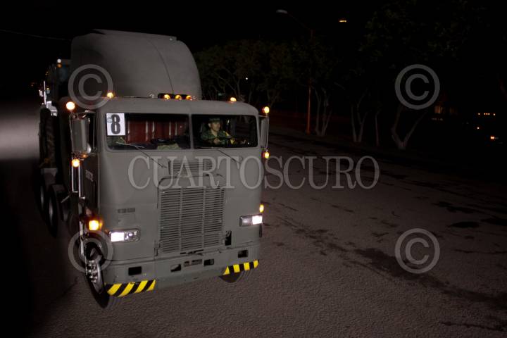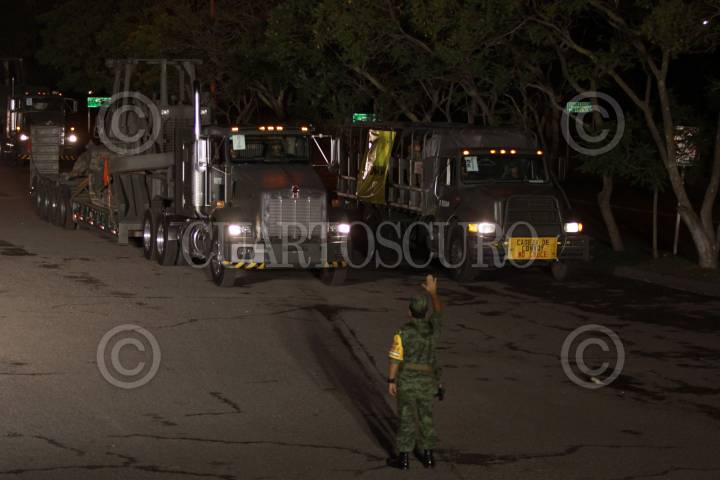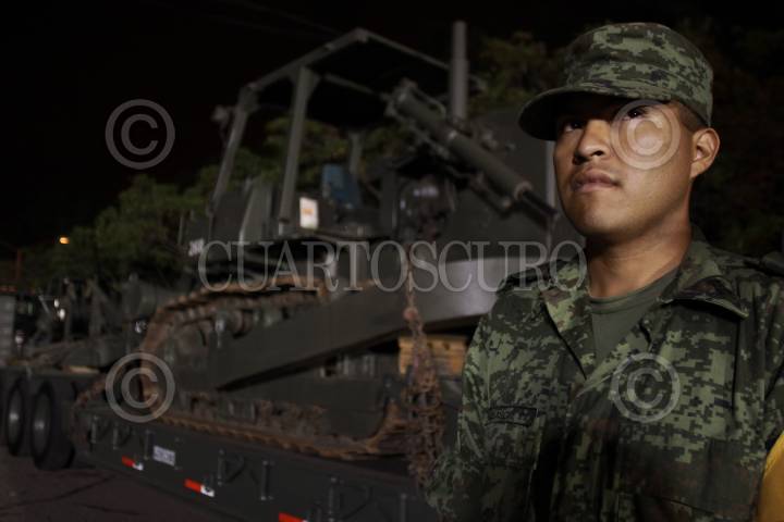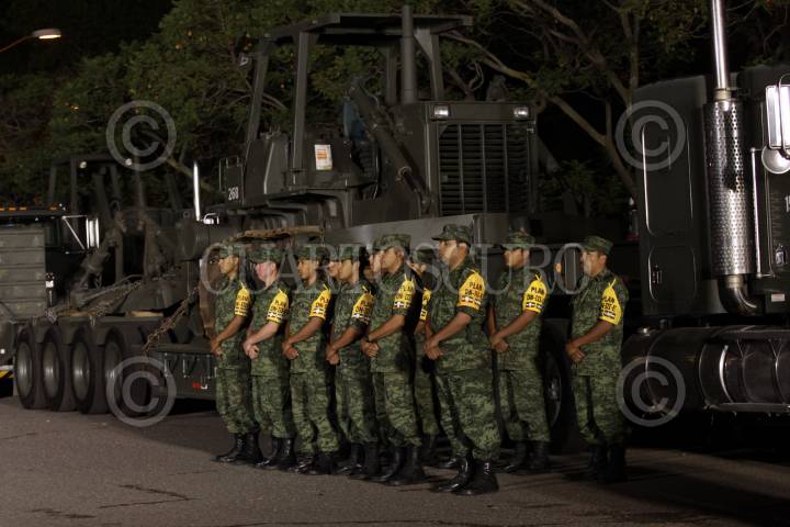 MÉXICO, D.F., 16JUNIO2009.- Esta madrugada partieron del campo militar número1 a diversas partes e la República Mexicana agrupamientos de vehículos que constan de máquinaria pesada esto para la prevención de desastres FOTO:SÁSHENKA GUTIÉRREZ/CUARTOSCURO.COM