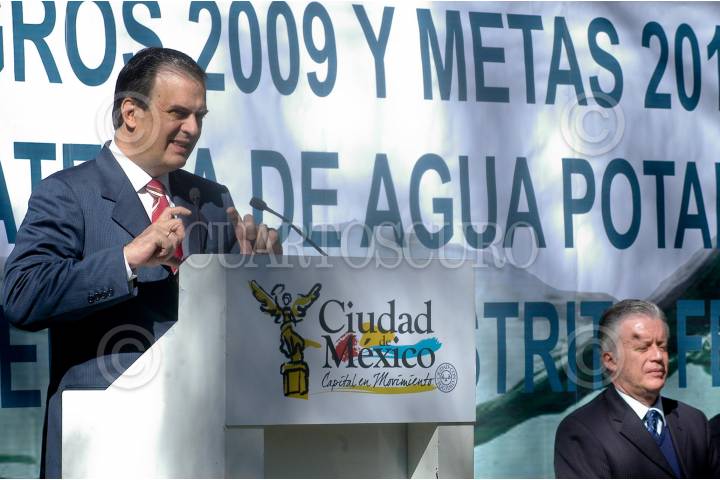 MÉXICO, D.F., 18ENERO2010.- Marcelo Ebrard, Jefe de Gobierno Capitalino, presentó el programa de agua 2010. Al evento lo acompaño, Ramon Aguirre, director del sistema de agua de la ciudad de México. FOTO: CUARTOSCURO.COM