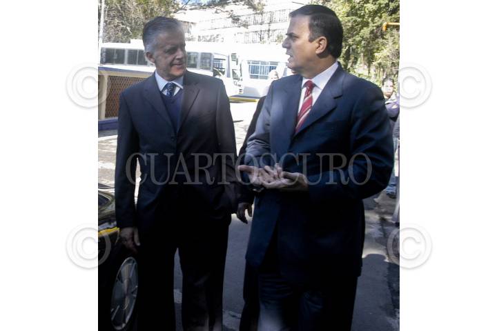 MÉXICO, D.F., 18ENERO2010.- Ramon Aguirre, director del Sistema de Aguas de la Ciudad de México junto a Marcelo Ebrard, Jefe de Gobierno Capitalino durante la presentacion del programa de agua 2010. FOTO: CUARTOSCURO.COM