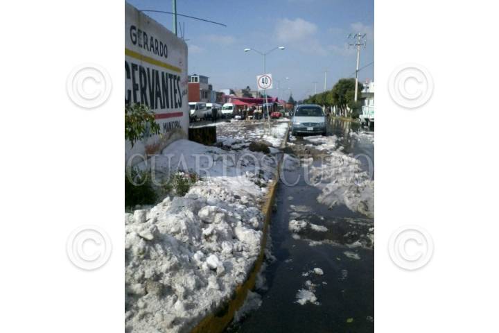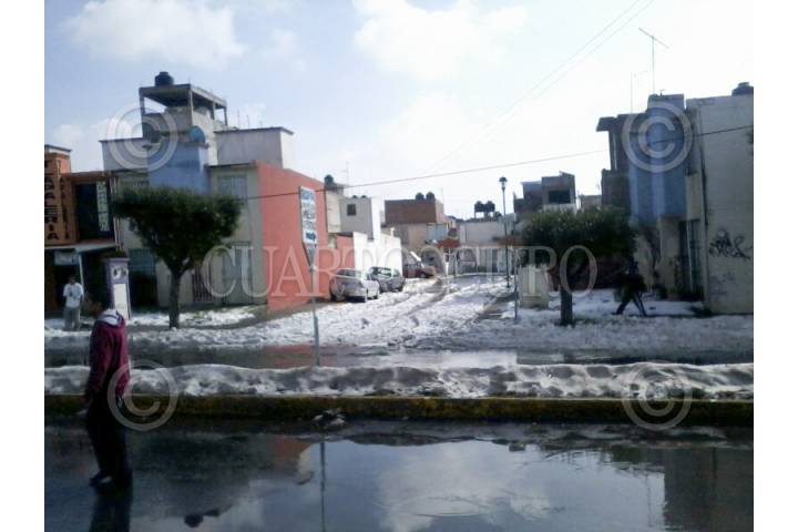 SAN VICENTE CHICOLOAPAN, EDOMEX, 23NOVIEMBRE2013.- Más de 200 familias de San Vicente Chicolopan resultaron afectadas, al registrarse una fuerte granizada la tarde-noche del viernes, la cual alcanzó 30 centímetros de espesor y derrumbó el techo de una escuela. FOTO: CUARTOSCURO.COM