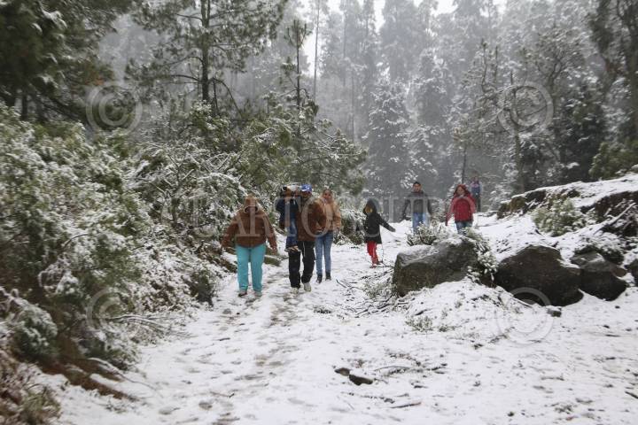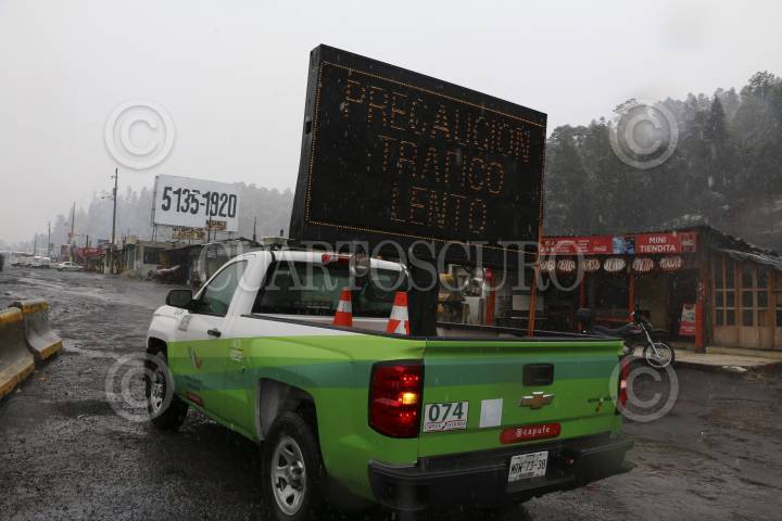 IXTAPALUCA, ESTADO DE MÈXICO, 13ENERO2016.- Neva en las partes altas del Estado de México con los límites del estado de Puebla en el paraje conocido como Río Frio y llano Grande. Personal de Protección Civil recomiendan estar atentos a los avisos de la contingencia por el frente frio que azota la entidad. FOTO: SAÚL LÓPEZ /CUARTOSCURO.COM