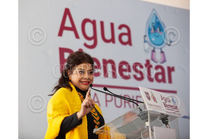 CIUDAD DE MÉXICO, 30DICIEMBRE2024.- Clara Brugada, jefa de gobierno de la Ciudad acompañada de José Mario Esparza Hernández, secretario del agua en la Ciudad encabezaron la presentación del programa agua Bienestar Purificada que consiste llevar agua potable a alcaldías y colonias con problemas de agua en la Ciudad. FOTO: ANDREA MURCIA / CUARTOSCURO.COM